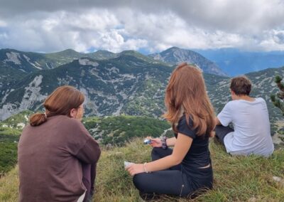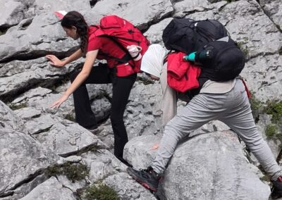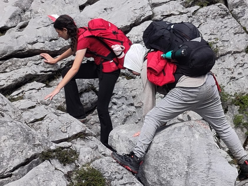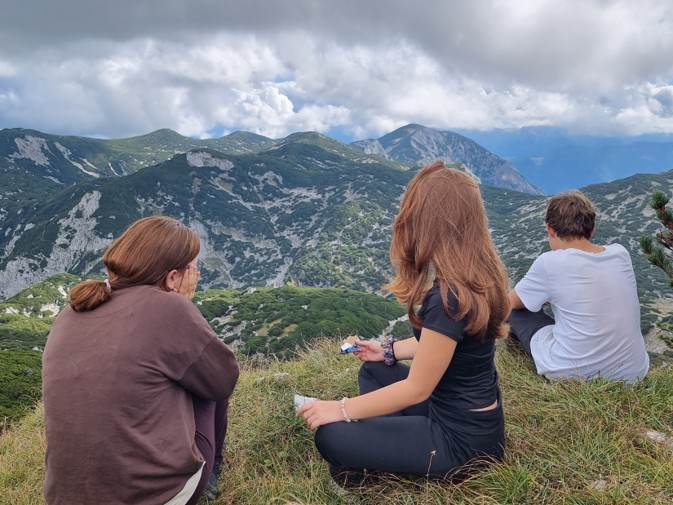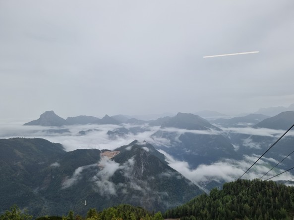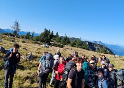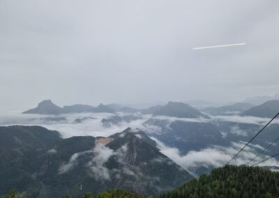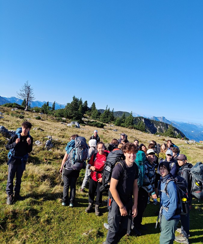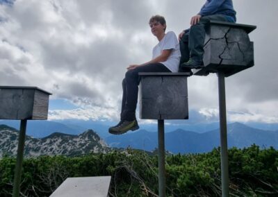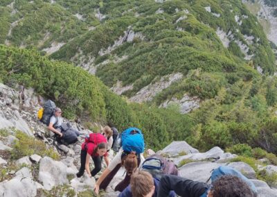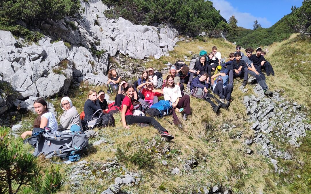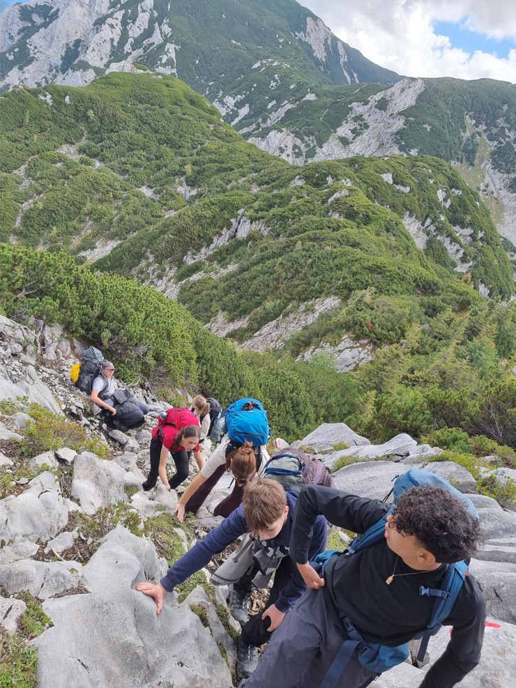 Der zweite Tag brachte zehn Stunden schweißtreibendes, kräftezehrendes Wandern mit sich. Zum Glück regnete es nicht, die Sonne schien und zwischen Kletterei, tiefen, schnaubenden Löchern im Berg – direkt aus der Hölle?! – und den schweren Rucksäcken genossen sie zwischendurch doch auch überwältigende Ausblicke auf die umliegenden Salzkammergut-Seen. Anstrengend war es für die Kinder trotzdem allemal. Stundenlang bergauf und bergab brachten die SchülerInnen an ihre Grenzen. Als sie letztendlich doch die nächste Hütte erreichten und es bei den letzten Ankömmlingen bereits dämmerte, waren alle erleichtert, den schwersten Teil hinter sich zu haben.