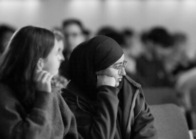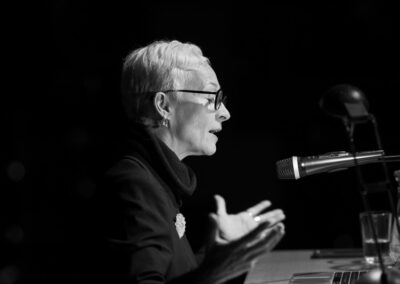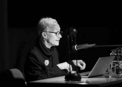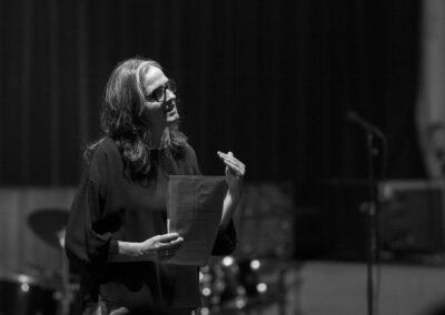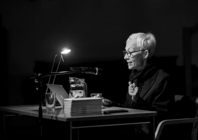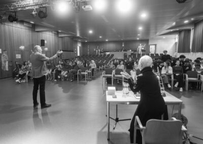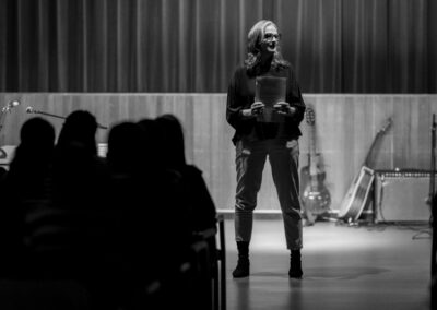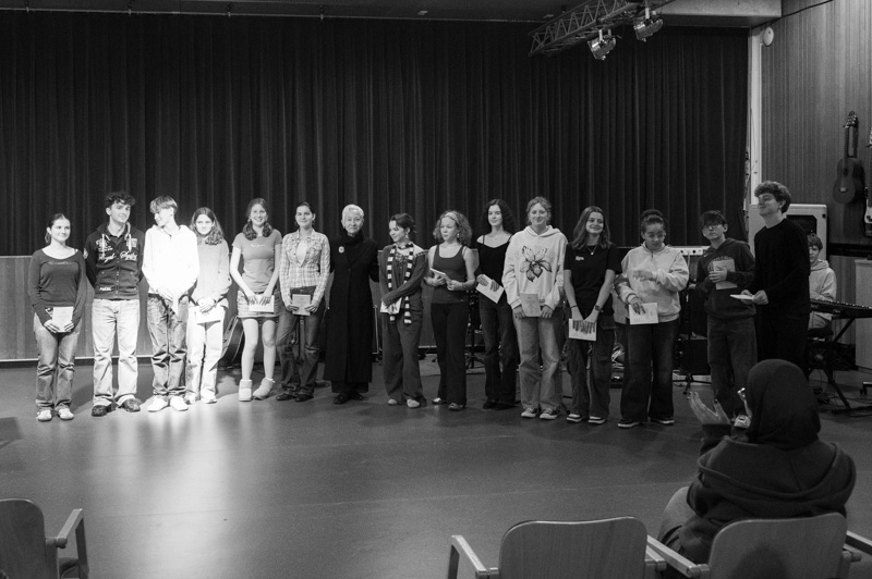 Moderiert von Hrrn. Christoph Braendle, las die Schauspielerin Sona MacDonald  vierzehn unterschiedlich lange Texte von Schüler*innen im Alter von 14 bis 19 Jahren zum Thema „Tempo“ vor. Eine Besonderheit war, dass ausschließlich Texte unserer eigenen Oberstufe vorgelesen wurden, worauf wir sehr stolz sind!