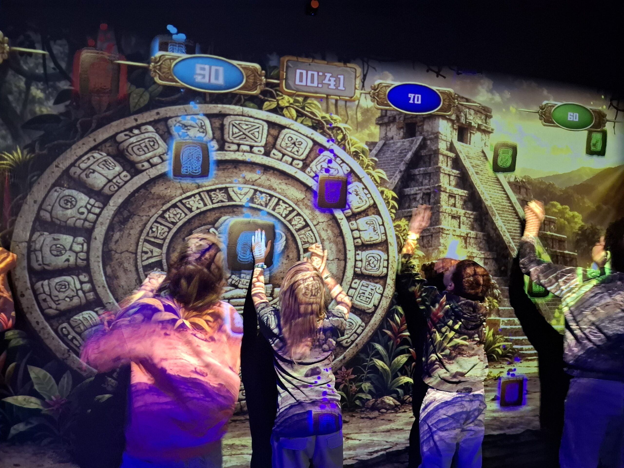 Im 5D Ride Abenteuer bereisten wir Atlantis im Wettlauf gegen die Elemente und mit der VR-Brille gings dann weiter ins Reich der Maya wo wir den Drachen Kukulcan auf einem atemberaubenden Flug begleiteten.